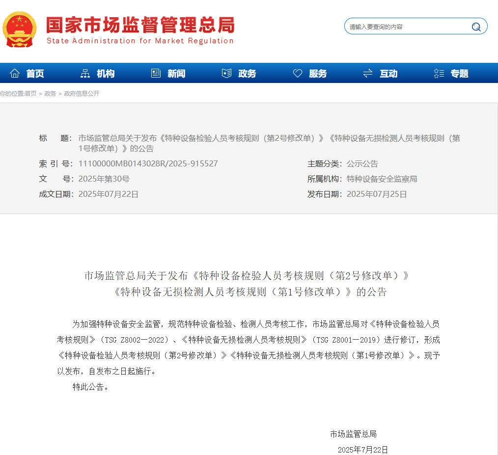 《特種設備無損檢測人員考核規(guī)則(第1號修改單)》(TSG Z8001—2019)